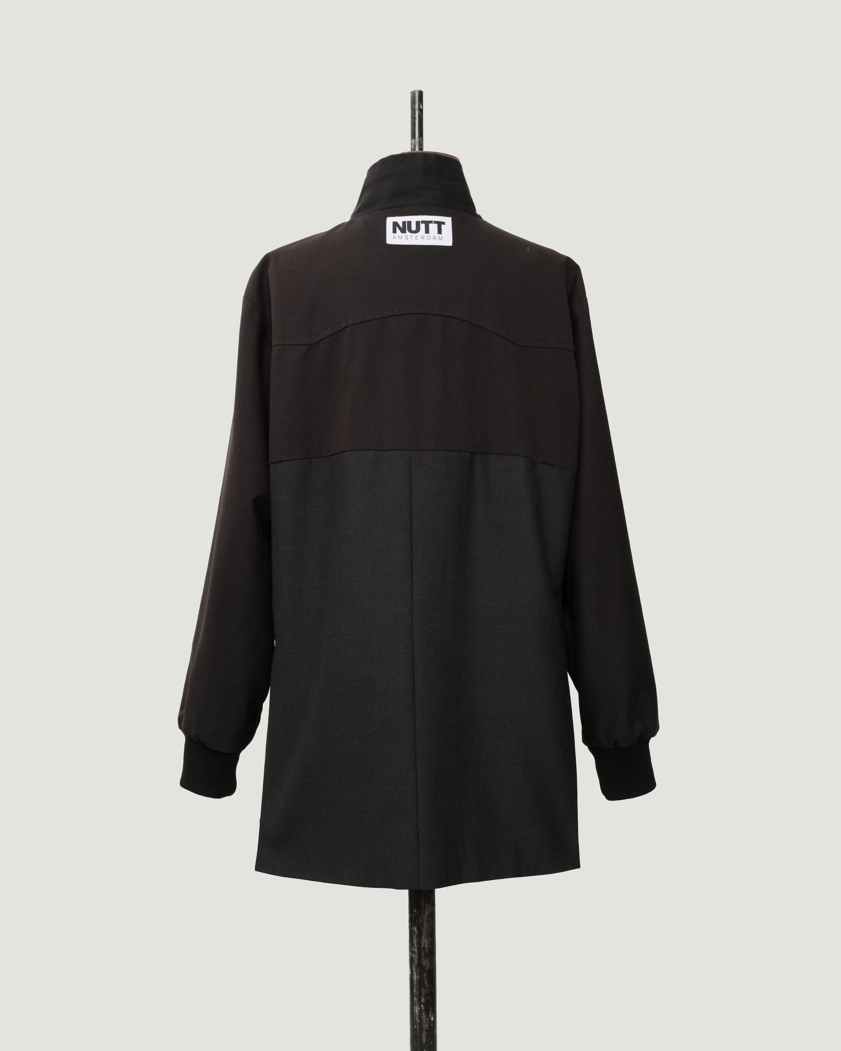 BLACK JACK ontmoet real fashion op straat. Een pre-loved bomber fuseert met een vintage antraciet blazer tot een jasje dat nonchalant én krachtig oogt. De relaxte pasvorm laat hem los vallen, terwijl de stoere rits en de rood ruiten binnenvoering een eigenwijze twist toevoegt. Perfect passend voor een echte M, casual en chic in één.